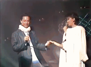 ▲和电影里幽默搞笑的形象截然不同,周星驰在综艺节目上总是显得有些腼腆。张国荣和梅艳芳,总是衬一脸。