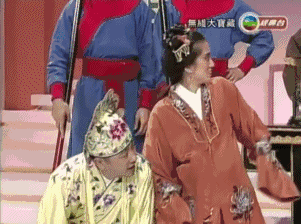▲《欢乐今宵》有各种轻松搞笑的小剧场。演员各种扮鬼扮马,即兴演出。这里除了有梅艳芳扮的丑角,还有谢贤扮演的西门贤,林建明扮演的潘金明……