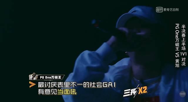 ▲《中国有嘻哈》“六进四”半决赛的赛场上,pg one的赛曲《h.m.e》惹毛了众rapper。