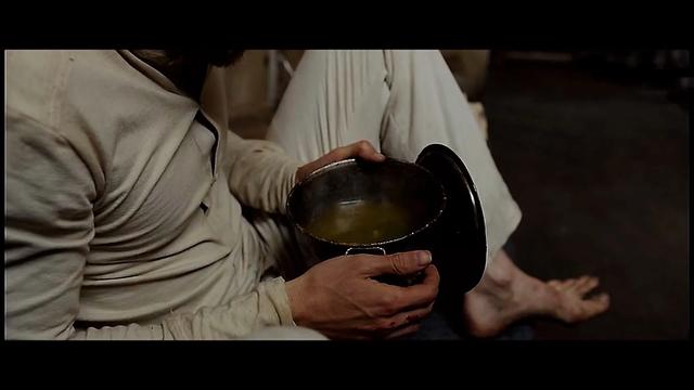 ②当亨利第一次越狱失败,被单独关禁闭。逼仄的牢房,出口设计在地面上,犯人和外面的沟通联系,都要趴在地上,来接受每天递给的饭菜——一碗很稀菜汤 。