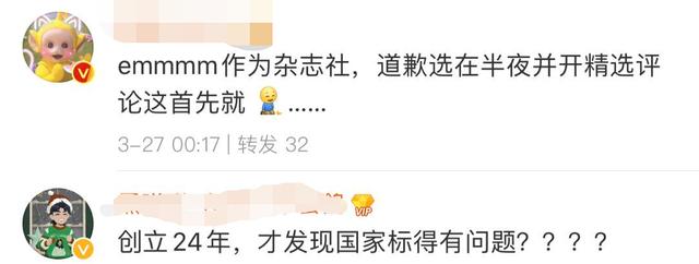 声明一出,不仅网友对杂志方敷衍的态度十分不满,还表示:“作为一个创刊24年的大刊,才发现国家标注有错误吗?”字里行间都是质疑。