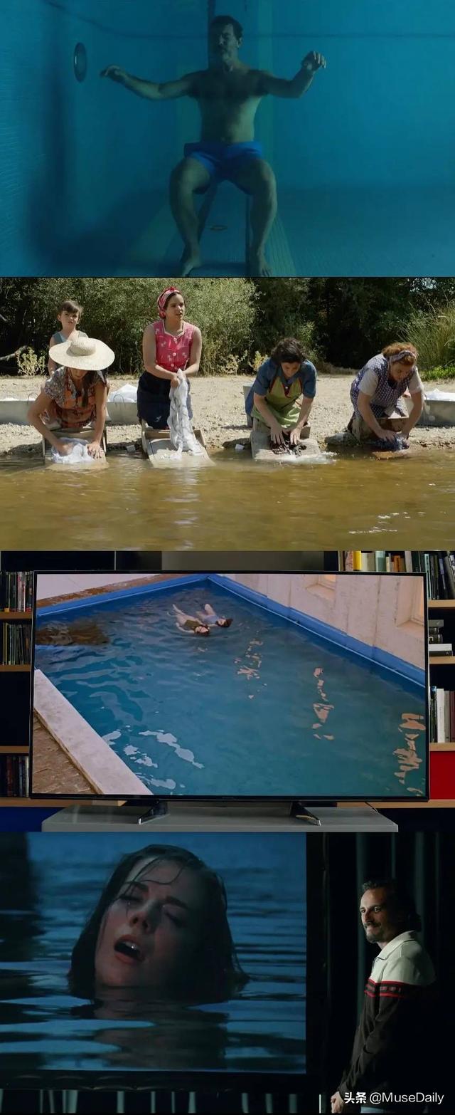 导演安排了他闭气潜入泳池的镜头,忧伤的音乐加上蓝色的池水。