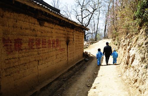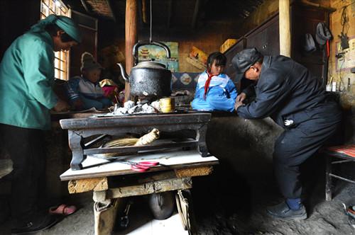 杨马俊老师将两名家住偏远山区的孩子接回室家里吃饭。