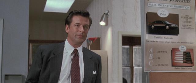 那位公司下放的管理人员来到办公室除了把他们臭骂一顿,告诉他们这场“大亨游戏”中残酷的丛林法则外,还给了他们最后通牒。月末时,销售成绩第一名可以获得凯迪拉克轿车,销售成绩第二名可以获得一套牛扒刀具,销售成绩第三名就只能被炒鱿鱼了。