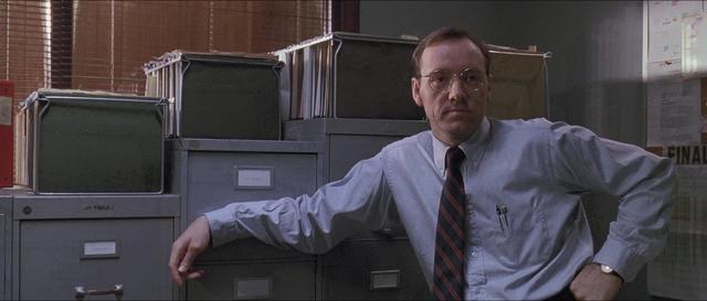 电影中的真正资方一直没有出现,倒是有个传话人,就是上文提及的主管威林逊。威林逊的饰演者凯文·史派西曾在电影《美国丽人》中饰演过一个无辜受害的丈夫,他那张干净无害的脸,在这部电影中变得极度冷漠。如果说《美国丽人》中凯文·史派西的笑是无辜绝望的,同样的笑容放在《大亨游戏》里则是阴险冷漠。
