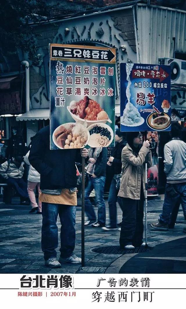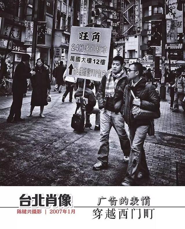 于是,西门町就有了两套话语系统:快速生产并迅猛发迹的珍珠奶茶店门庭若市滋养着焦渴的少男少女,放着老爵士乐的咖啡馆生意清淡却执守着自己的价值观;一间经营闽南传统风味的食肆里,一边坐着白发苍苍、少言寡语的老住户,一边坐着裤子破了洞、以衣裳褴褛的形式追逐时尚的少年郎。他们或许彼此看不惯,却分享着同一个空间。入了夜,色彩斑斓的年轻人嬉笑着穿行在霓虹闪烁的步行街上,背景里时常会出现一位倚着拐杖、表情耐人寻味的年迈老者。我是一个旁观者,一个过客,默默地经过、伫立,举起相机,等待他们进入那个瞬间——那或许是一个没有文献价值的瞬间,却是我收藏的“台北表情包”里最为生动而深刻的一幅。