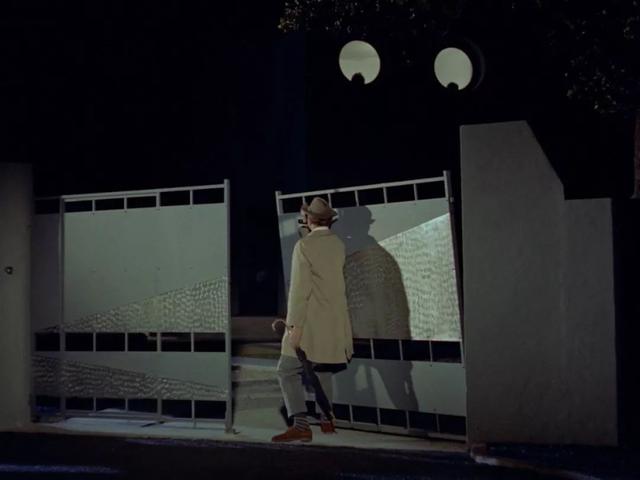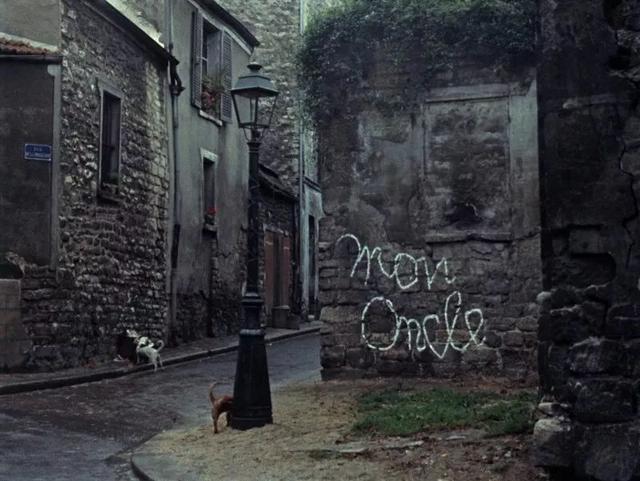 从叙事的角度而言,在这部电影中空间才是叙事的主角。开场和结尾都以狗的运动串联起,现代化的都市和老旧郊外城区的二元对立空间。这让塔蒂进入摩登建筑的失常,和所谓的上流社会的虚伪、过剩的仪式再次形成对比。在没有一处特写—>大全景—>空间始终凸显着与人物之间的不协调与冲突。这种高跨度式的镜头组接形式从某种涵义上将本身就是为了表达矛盾性和不协调性,塔蒂对空间卓越的造型能力能力,是爱森斯坦、弗里茨朗、基顿的嫡系。