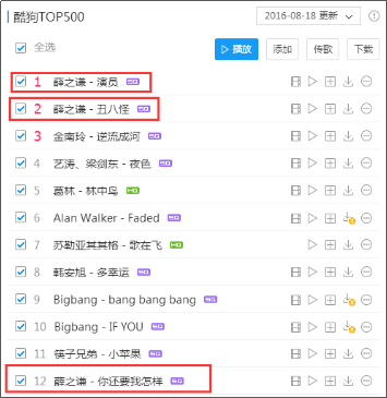 wuli上上谦到底有多红?小编从“酷狗top500榜单”扒拉到这位创作小能手所爆发的小宇宙:根据网友热搜和播放记录智能排序的前十二名里,薛之谦的歌就占了三个席位,而且包揽冠亚军!我就问一句:这样的风头还有sei?!