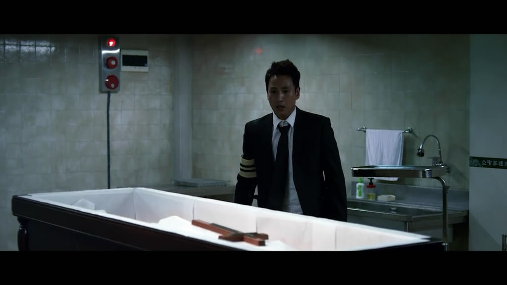 为了掩盖真相,高建洙将尸体拖往自己所开的车内,但并没有想到更好地处理尸体的办法,只好走一步看一步。但是当他看到装殓母亲的棺椁时,他想到了将尸体藏入母亲的棺木中,借此毁灭真相,让人觉察不到。