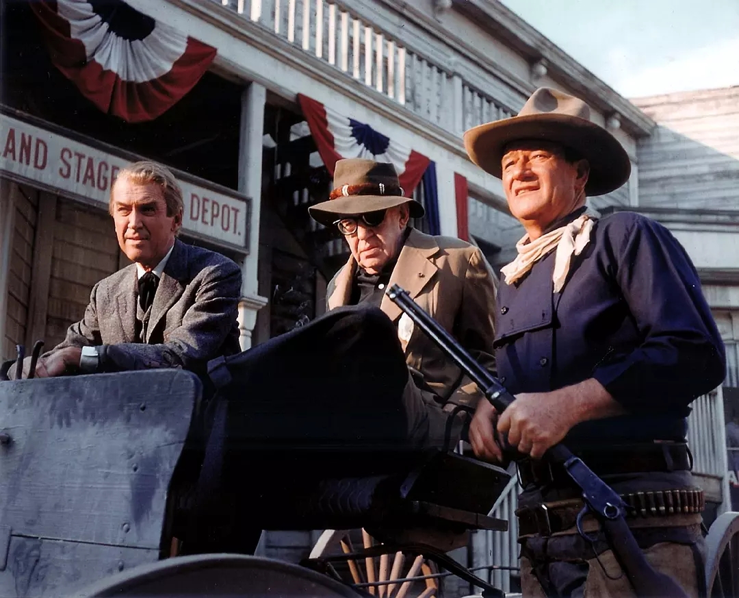 然而韦恩死了。和所有靠子弹说话、靠一个女人的心活着的人一样。他亲手结束了自己。斯图尔特的生死关头是他自己找来的。如果韦恩不开那一枪,他就会无声无臭地完成一个理想主义者的死亡。然后,小镇的一切恢复平静。韦恩的情敌消失了,他在悍匪面前的威慑力仍在。被一个外来的热血青年扰乱的丛林秩序重新恢复平衡。他只是一个不合时宜的外人。但韦恩开了那一枪。从此葬送了自己的幸福,成全了别人的生活。是不是只有这种脊梁骨够硬、心灵耐得起折磨的人,才有资格去做给历史铺路的石头?无论怎样,新时代从他的头顶呼啸而过,把他遗忘在了路基上。于是,他就躺在那里,连鞋子也没有了。
