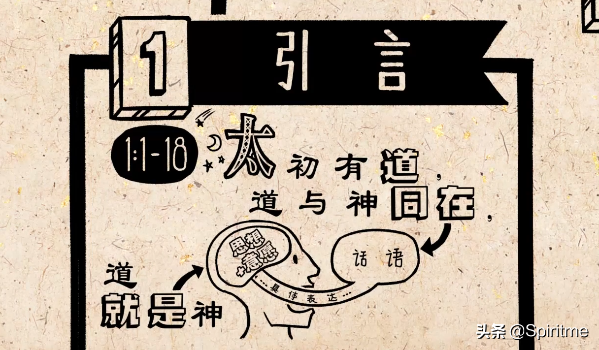 这一集我们先关注《约翰福音》的上半部分。这卷书用了两段序言作开场。先是诗句“太初有道”,显然这也是创世纪第一章提到的。神用他的话语创造了万物。当然,一个人说的话不能完全和这个人划等号。但的确,他的话会体现他的思想和意愿。所以约翰说道与神同在,表明了两者的独特性,同时道就是神,表明了‘道’的神圣性。