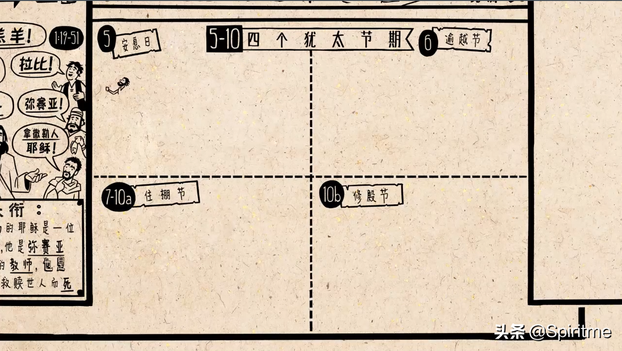 之后,约翰又讲述了四个发生在犹太节期的故事,耶稣用这些事件来指明这些节日对他的身份的启示。