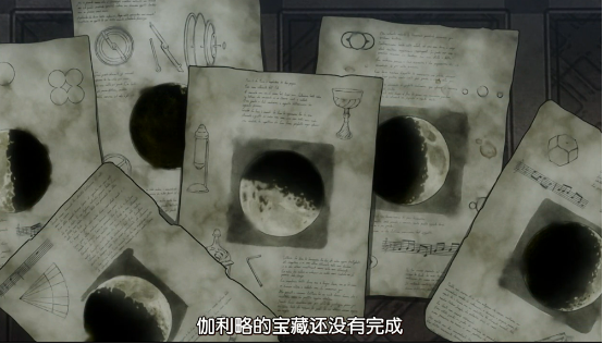 最后,伽利略的宝藏是真的存在的(动画中),隐藏在月之草图里,需要用伽利略望远镜来看草图里的月亮阴影部分,里面有伽利略留下的未完成公式