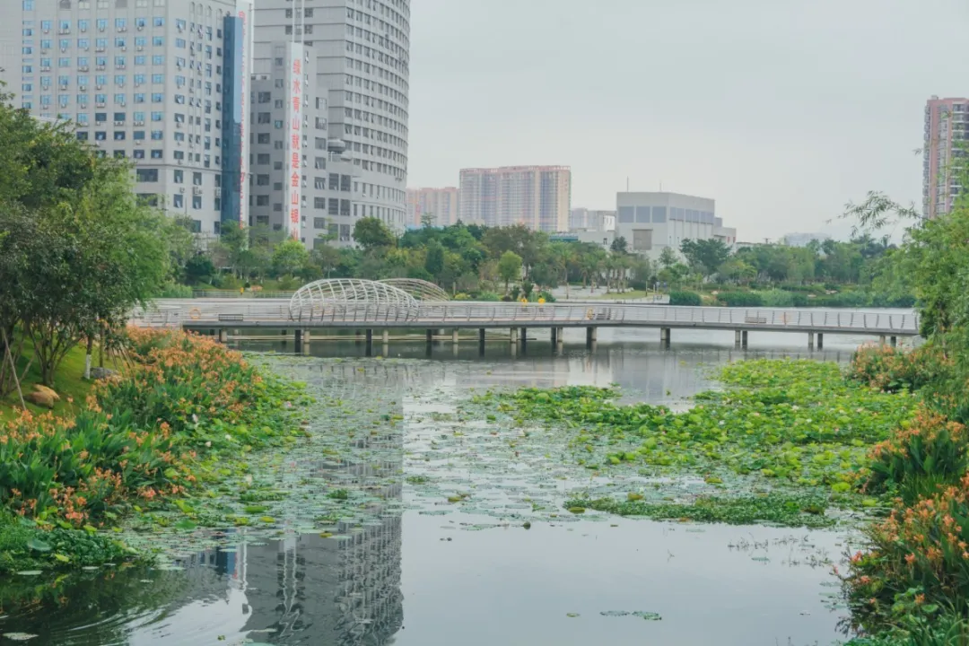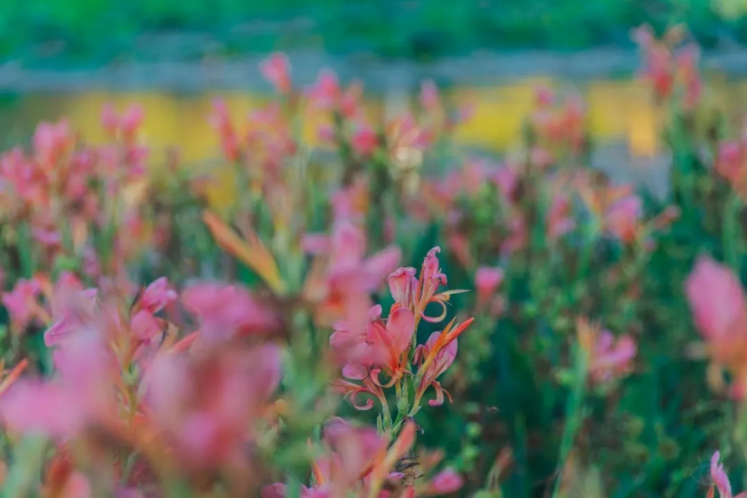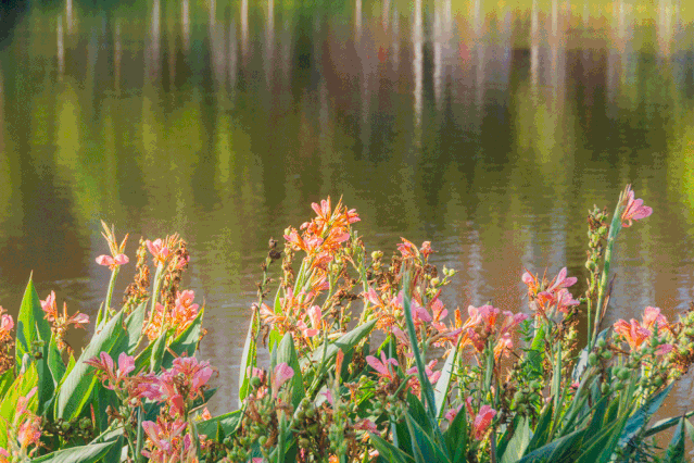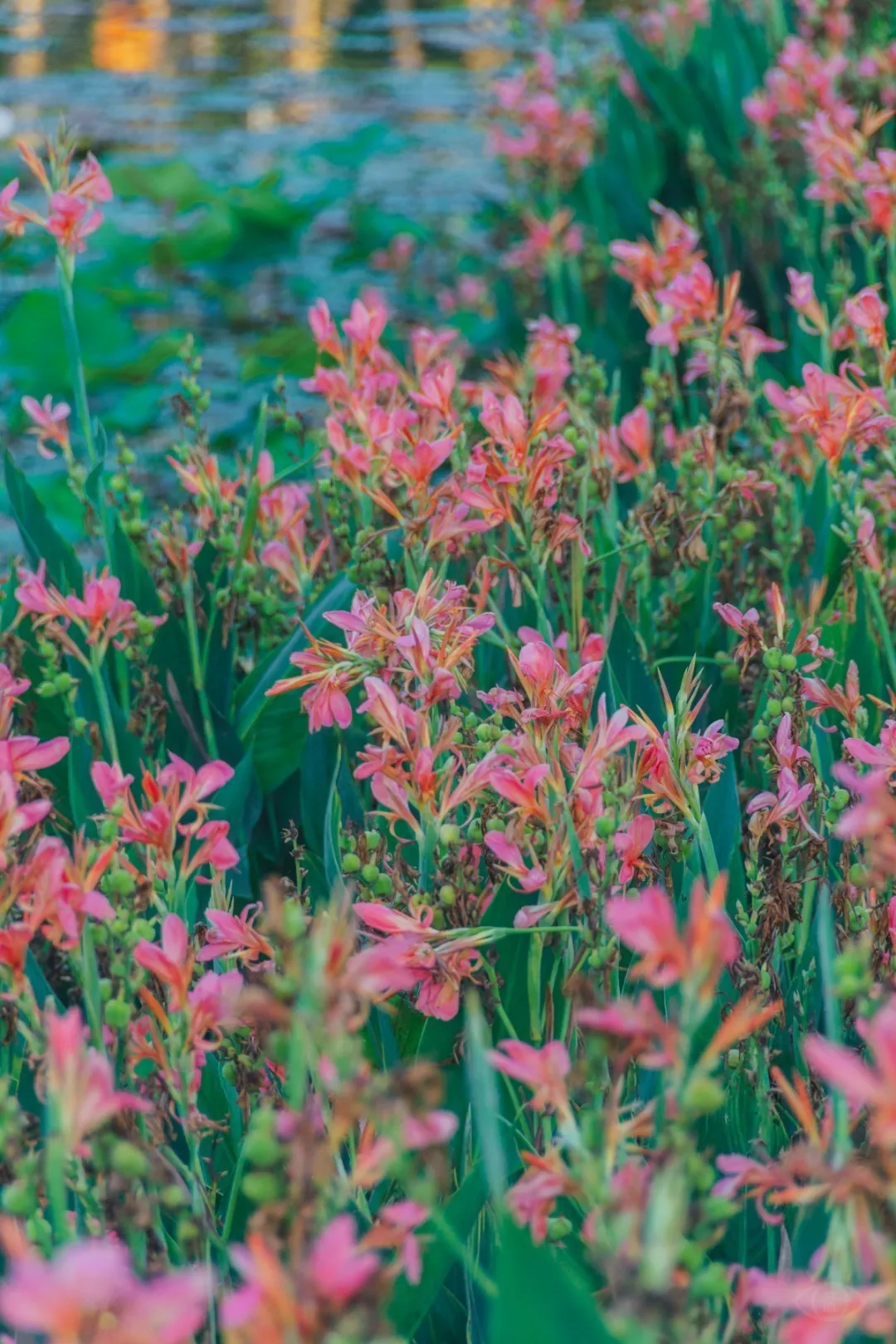 还有沿岸盛放的荷花、美人蕉...