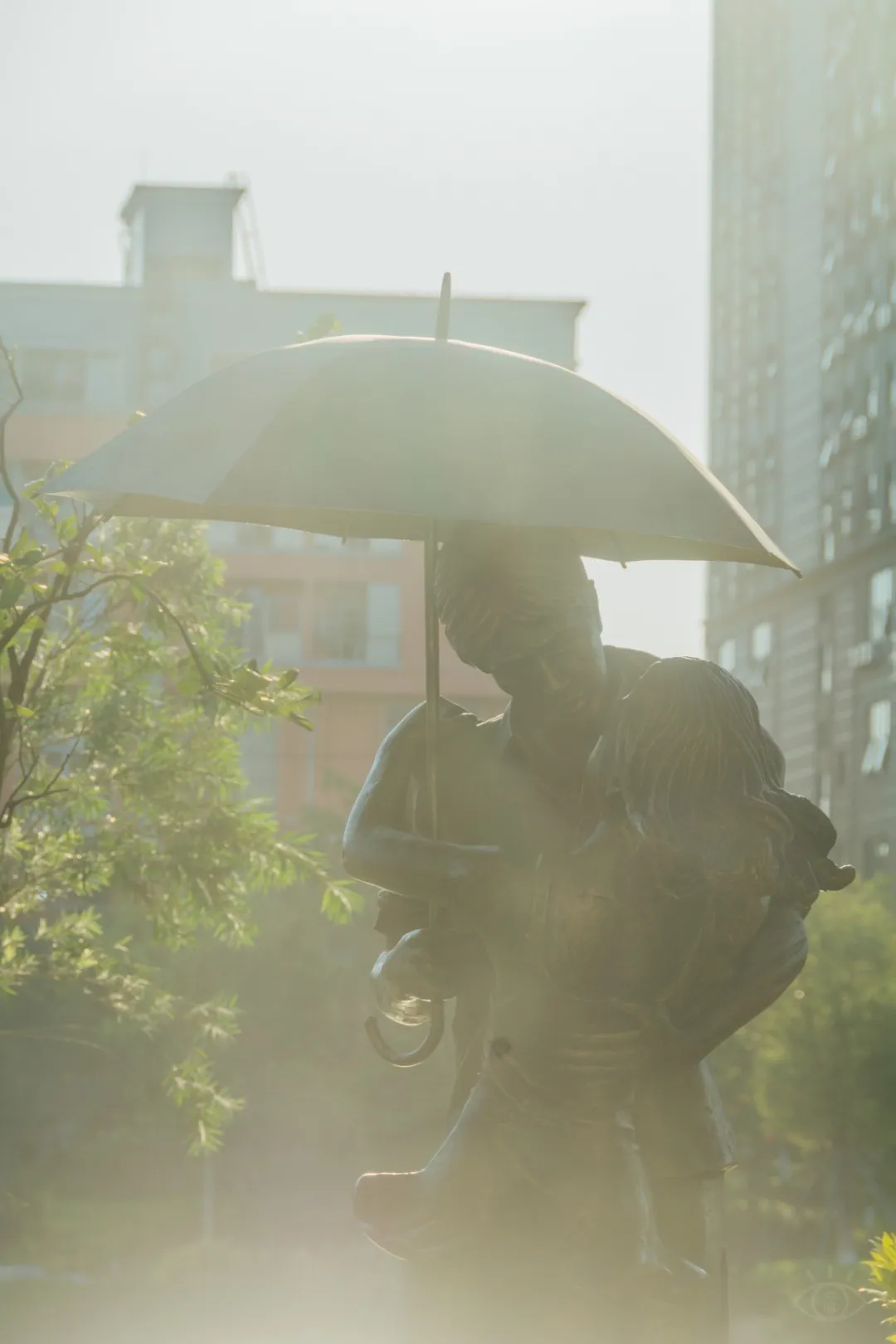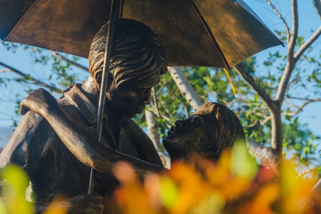 亭廊旁有座情侣kiss雕像