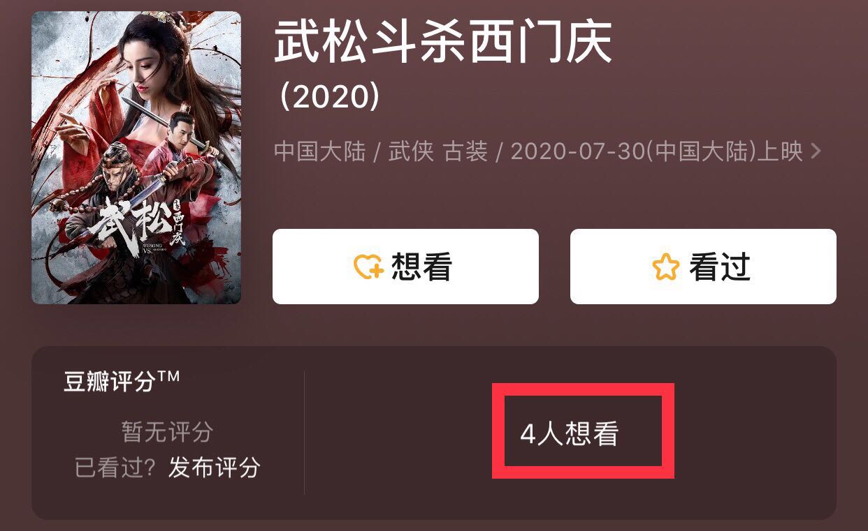 截止笔者下笔,这部电影在豆瓣,仅有4位网友标记为“想看”。
