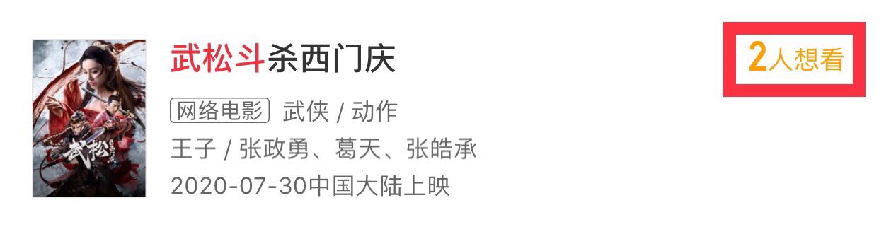 在猫眼,更是仅有2位网友标记为“想看”。