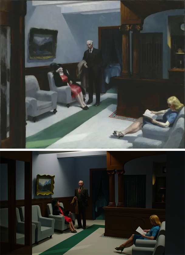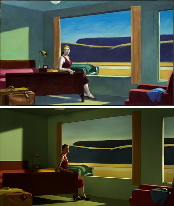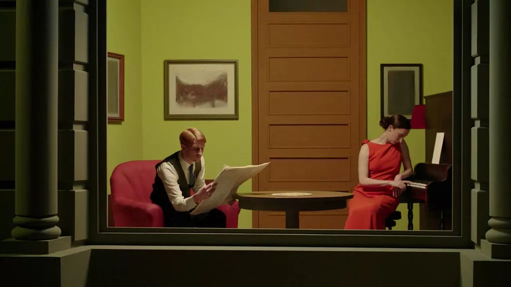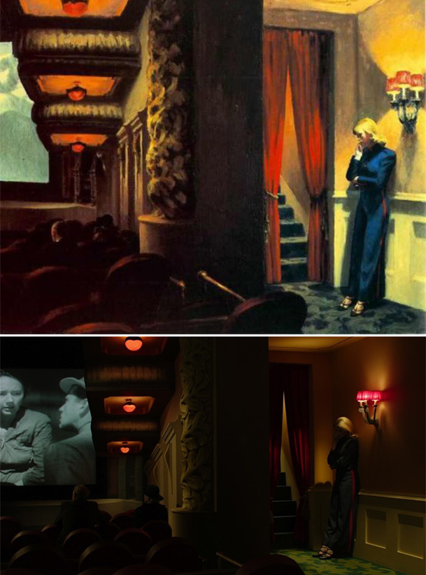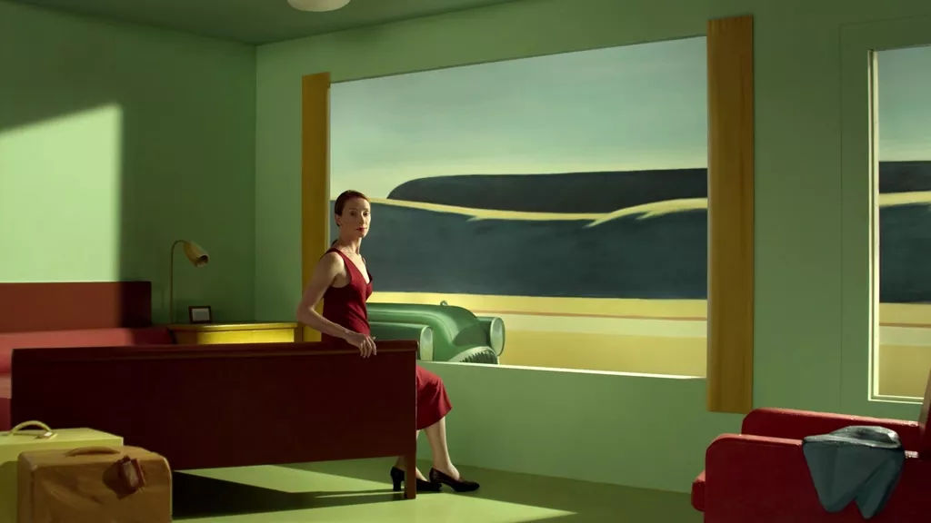 看完这部影片,与其说看了一部电影,不如说是看了一场画展,导演用影片将美国画家爱德华?霍普的 13 幅绝世名画构成了美国社会历史的现实风景,雪莉——一个美国女性的缩影,她走进霍普的画作,走过美国 20 世纪的重大历史时刻,见证政治、社会和文化等各层面的剧变。现在她走出了画作,走进了电影,我们观看的仿佛就是她的日常生活一般,鲜活的呈现在我们眼前。