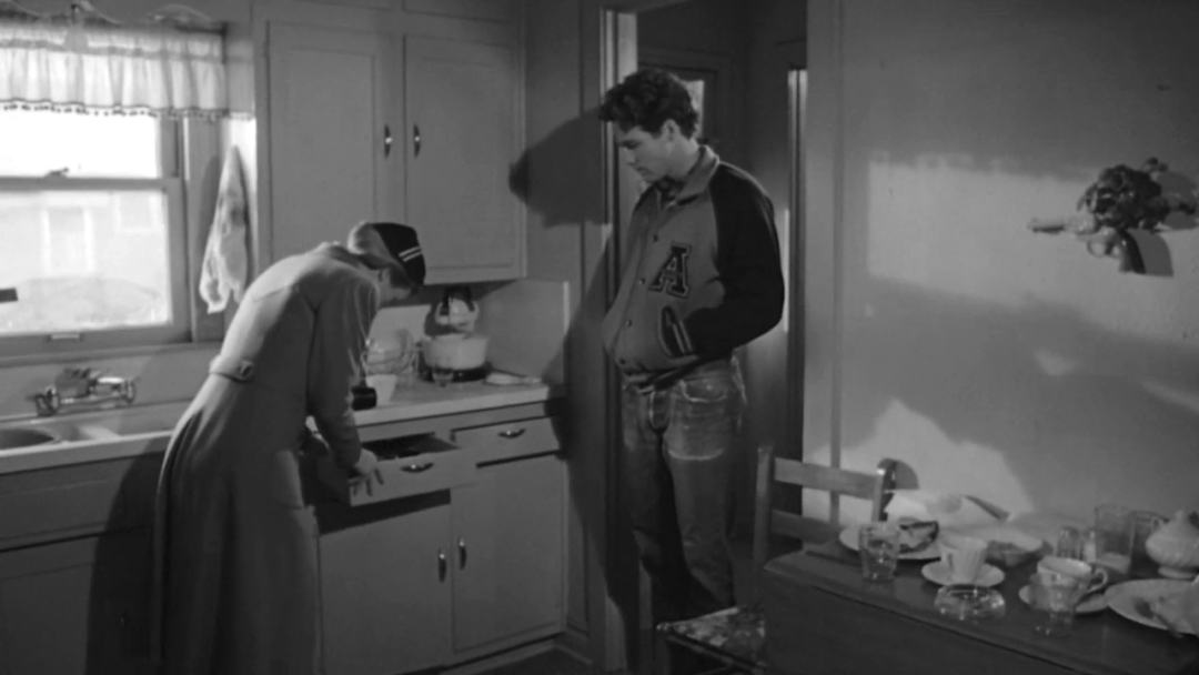 再看sonny和他父亲,两人分别靠在画面的两边,中间空出了距离,说明两人的关系存在隔阂。