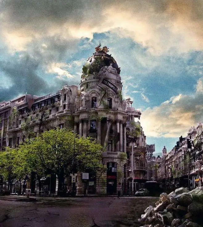 木制房子腐朽殆尽,曾经的水泥森林、摩天大厦开始倾倒,那些举世闻名的地标性建筑成为一座废墟。