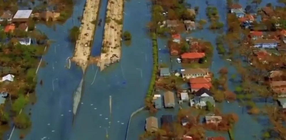 大坝失去控制,地势低洼的城市被彻底淹没。