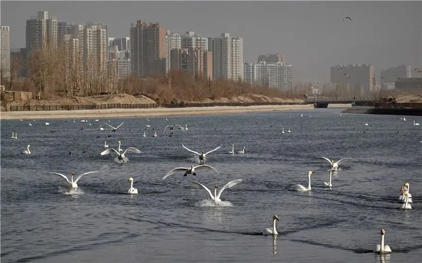 新疆库尔勒,一大批天鹅飞来这里,为长途迁徙补充能量。