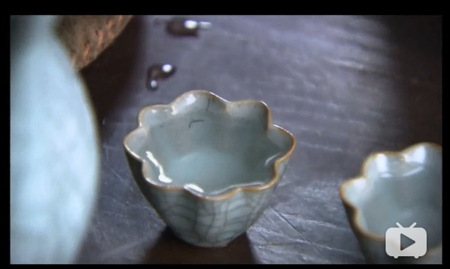 独孤仲平喝酒的杯子样式颜色仿照了汝瓷。
