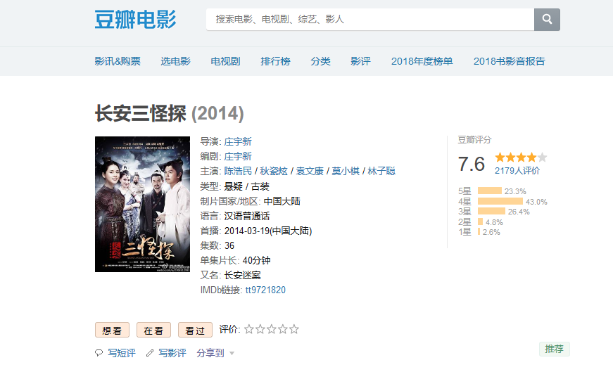 《长安三怪探》一个用心团队打造下的探案传奇,题材在如今国内市场并不是主流,所以它的收视率并不高,也没有大火。