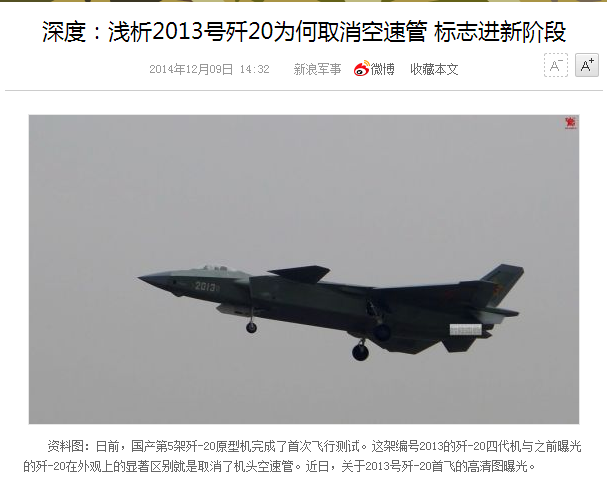 中国在研制歼二十的时候对于空速管的问题也有所反复,2013年的照片显示取消了,而2017年初发布的照片中有。