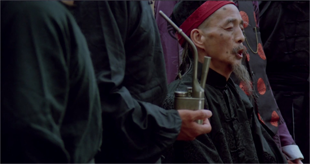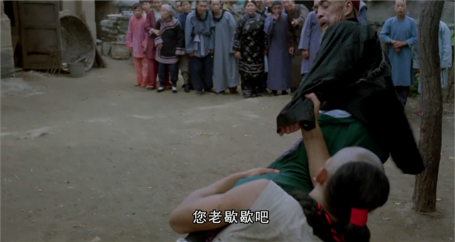 义和团表演“刀枪不入”,在影片中也有体现。大刀砍在胖子的肚皮上,只留下一道白痕。影片中,傻二的辫子依旧是传统的象征,辫子神功多次打败洋人,也是“刀枪不入”类的传统艺能,他也在义和团的集会上进行了表演。