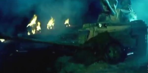图为影片中的我军坦克翻山越岭向敌纵深穿插
