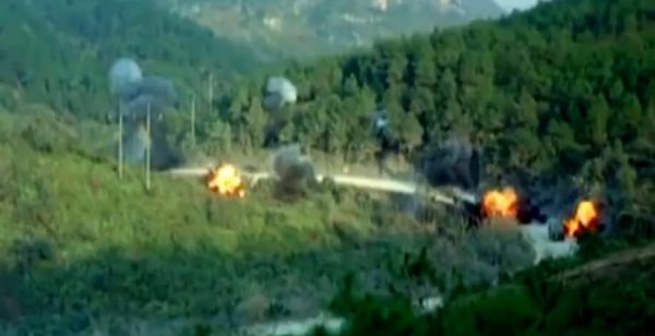 图为我军炮兵火力遮断并歼灭了试图设伏的敌反坦克分队