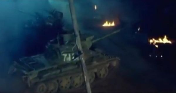 图为影片中我军坦克遮断敌撤退之路,占领防御