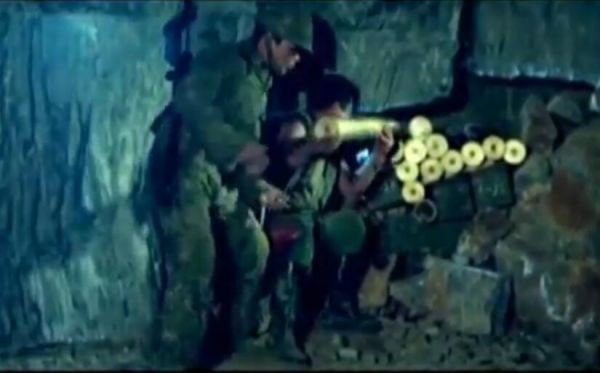 图为影片中配合坦克部队作战的我民兵队长