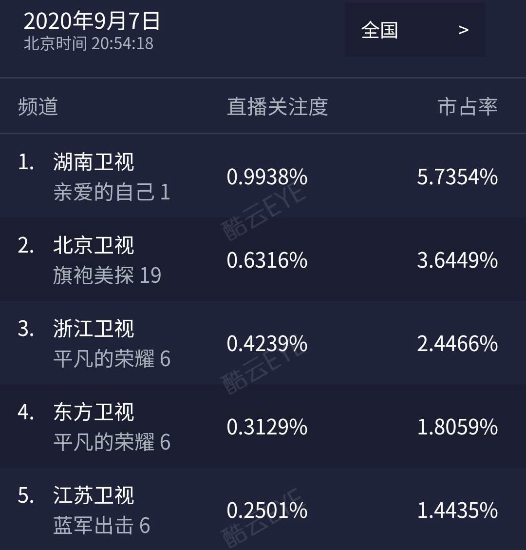 9月7日晚间,湖南卫视播出了电视剧《亲爱的自己》前两集。从酷云实时的收视率来看,这部电视剧开播之后,基本上维持住了1%前后的收视,位列同时段卫视平台当中的第一。显然,说《亲爱的自己》首播收视夺冠,是没有问题的。不过,和湖南卫视刚刚大结局的《一家人之名》对比,《亲爱的自己》显然收视率落后严重了。