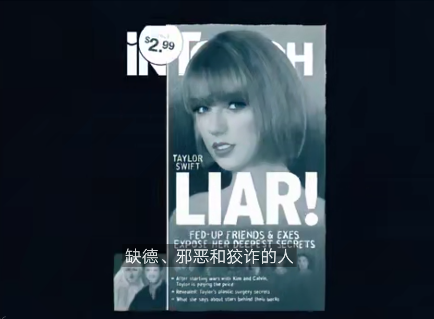 当她遭遇了全网黑事件之后,她创作了《look what you make me do》,大声唱到"之前的那个女孩已经死了。" 那个唱着风花雪月和青春的姑娘死了,是媒体和网友共同将她埋葬。