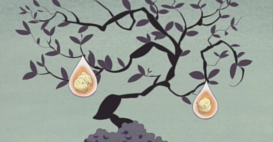 不远处是一具孕妇的尸体,孕妇腹中有两个胎儿,一只巨鸟把孕妇的尸体叼去了自己的巢穴中喂雏鸟,而雏鸟吃了尸体后排出的粪便则变成了种子掉入了土壤中,种子长成植株,开花结果,果实里又正是内两个胎儿。