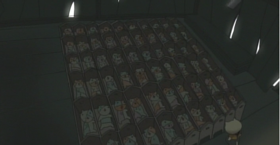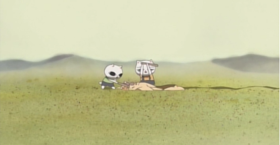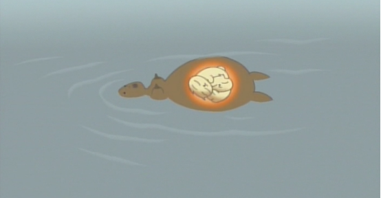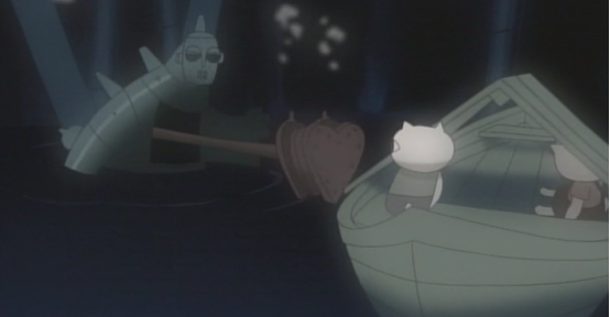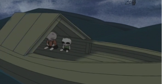 洪水淹没了一切,画面通过一只机械蝴蝶视角告诉了观众现状,姐弟俩不知从哪里找到了一艘船一起上船的还有新角色猪太郎,新旅途就此展开。