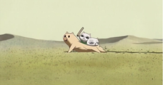 内部早已被掏空的猪太郎依然带着姐弟二人向前走,不离不弃并没有减少猫弟的暴行,猫弟因为嫌弃猪太郎的速度太慢而不停的敲打猪太郎,甚至还把猪太郎被敲击出的肿块割下来吃。