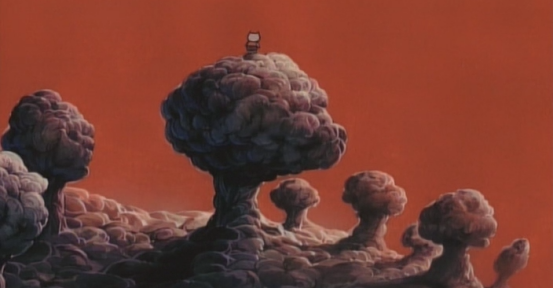 核武器爆炸的蘑菇云,想要卧轨自杀的女人,都在此时停滞,猫弟弟掰下了女人的眼泪一脚踩碎,体现着人世间的无情。