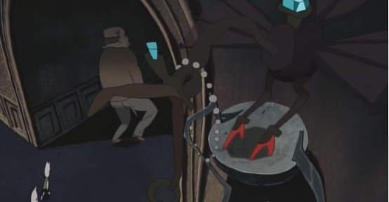 宅子的主人是一个穿西装的瘸腿中年人,中年人将姐弟俩领进餐厅,餐厅门口一只穿高跟鞋带着珠宝的鸟向着姐弟俩怪叫,仿佛在嘲笑他们。