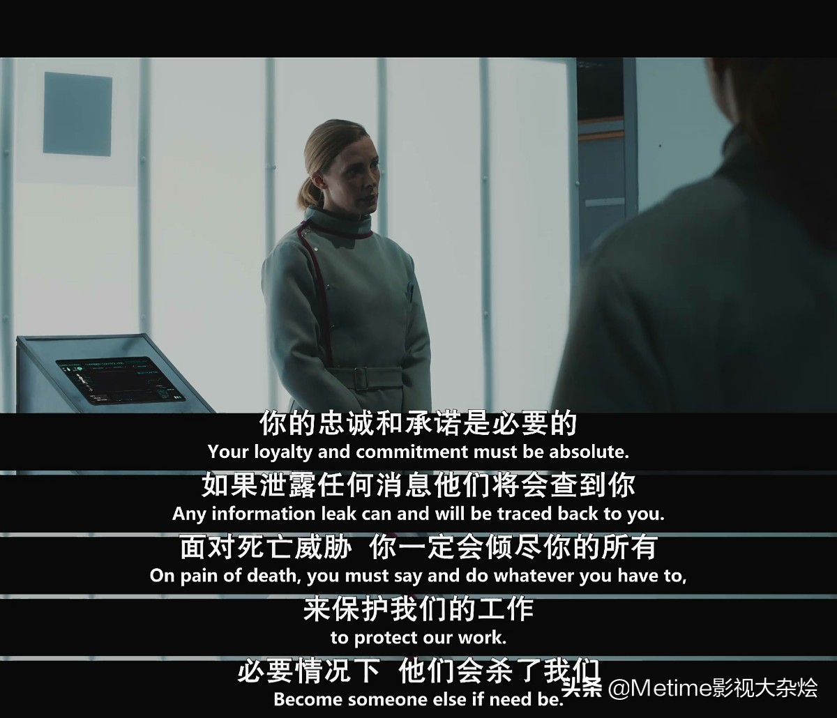 在镜头转换到白室外后,我们看到身穿实验服的鲁斯正在对新成员训话,而鲁斯也不是她的真名,真正叫鲁斯的是新来的组员,之前盗用鲁斯名字的是克莱斯勒博士。不难猜到,此时发生的事件是克莱斯勒被关进白室前的故事。从此处起,影片便和密室逃脱没有了关系。