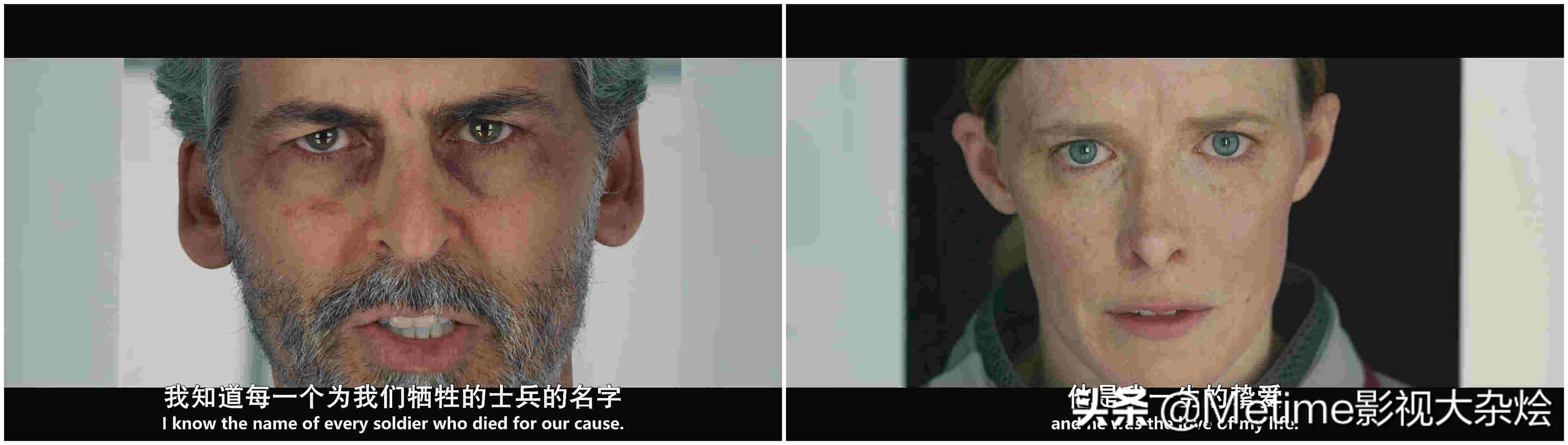扎卡里安与克莱斯勒通过一扇小窗对峙,窗口仅能看到两人的脸,愤怒与悲伤透过两人面部表情流露出来。