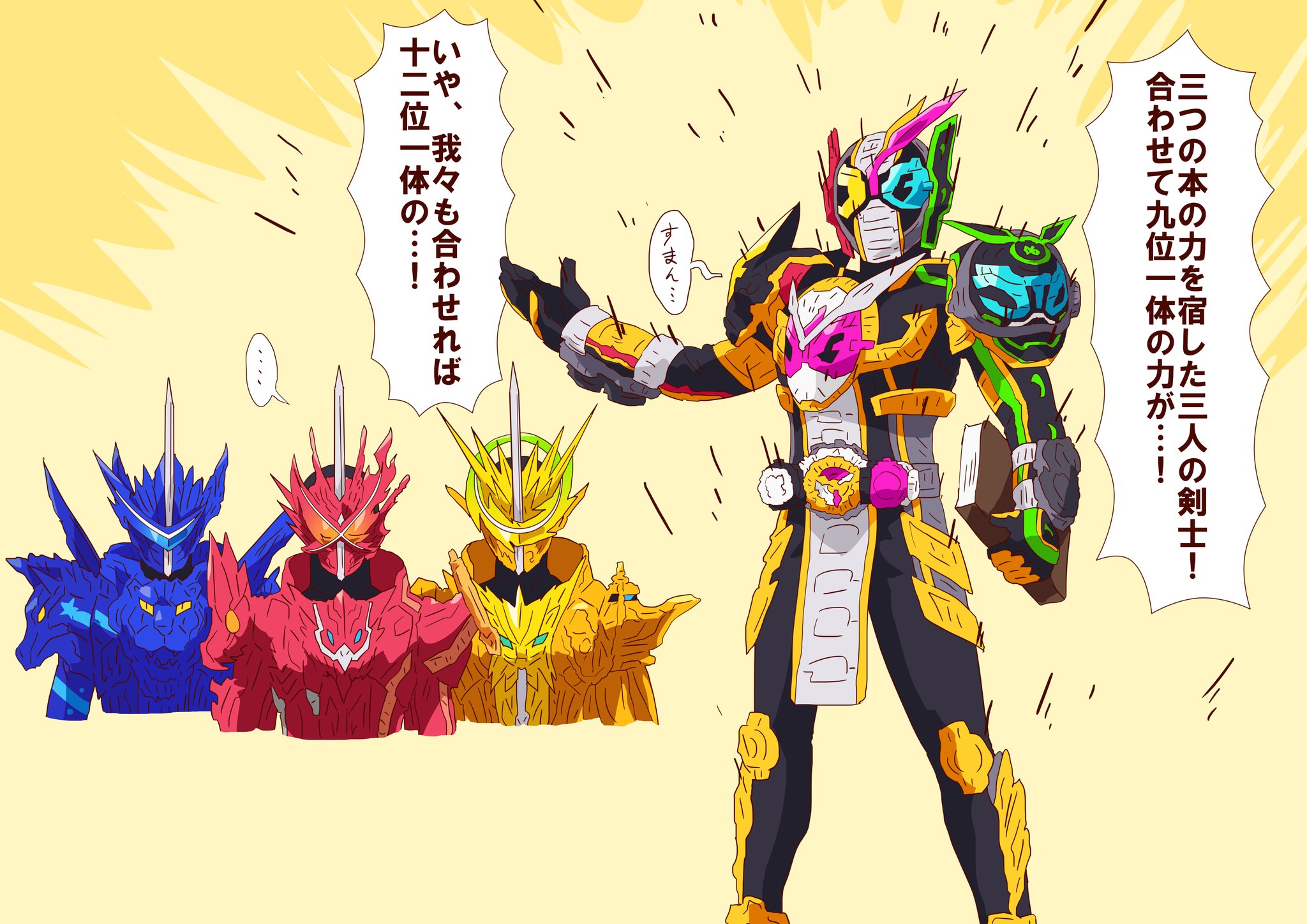 假面骑士圣刃这部作品受到了海量玩具的影响,导致剧情推进的速度非常快,刚刚10话左右,三位核心骑士的三册奇幻联组已经全部登场,而对于这次的三册联组,看点和好玩的地方非常多,也算是设计上很具有创意的形态了。