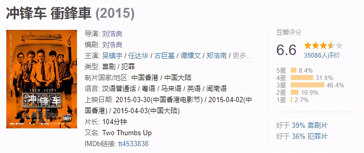 看之前做了功课,导演刘浩良之前拍过一部港片《冲锋车》,但评价一般。