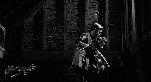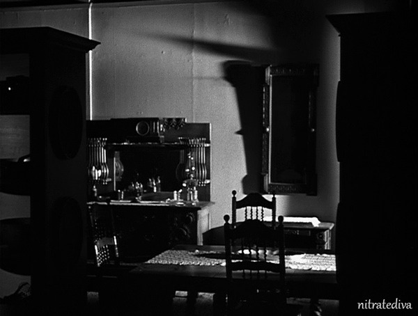 同时把德国表现主义的构图也吸收进来,影片几个令人惊惧的场面完全依靠影像来传达,当然要表达内心的阴暗,夜间取景就是常用的手法,所以,地窖场景,夜间逃跑的场景多表现出黑色的风格。