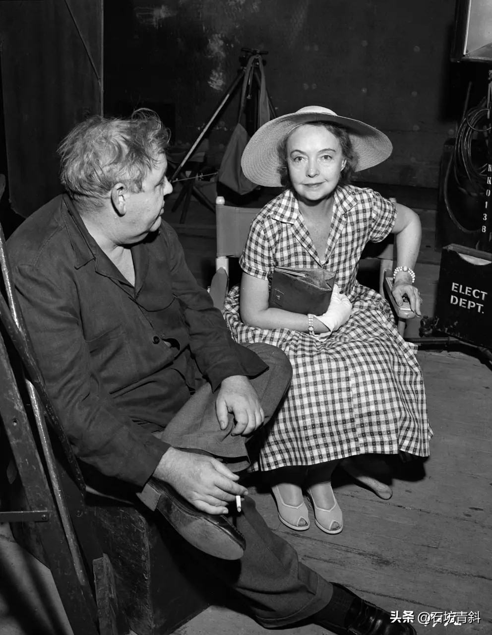 电影《猎人之夜/雾夜惊魂the night of the hunter》(1955)的片场里,导演查尔斯·劳顿charles laughton(左)和女主演莉莲·吉许lillian gish(右)休息