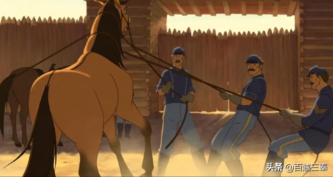 当时正值美国的“西部大开发”,资源,财富让人们趋之若鹜。站在人类的立场,这种机遇都不抓的可能是个“傻子”。而对于spirit和族群们来说,不仅将失去家乡,还要面临被套上缰绳拖拽货物的命运。