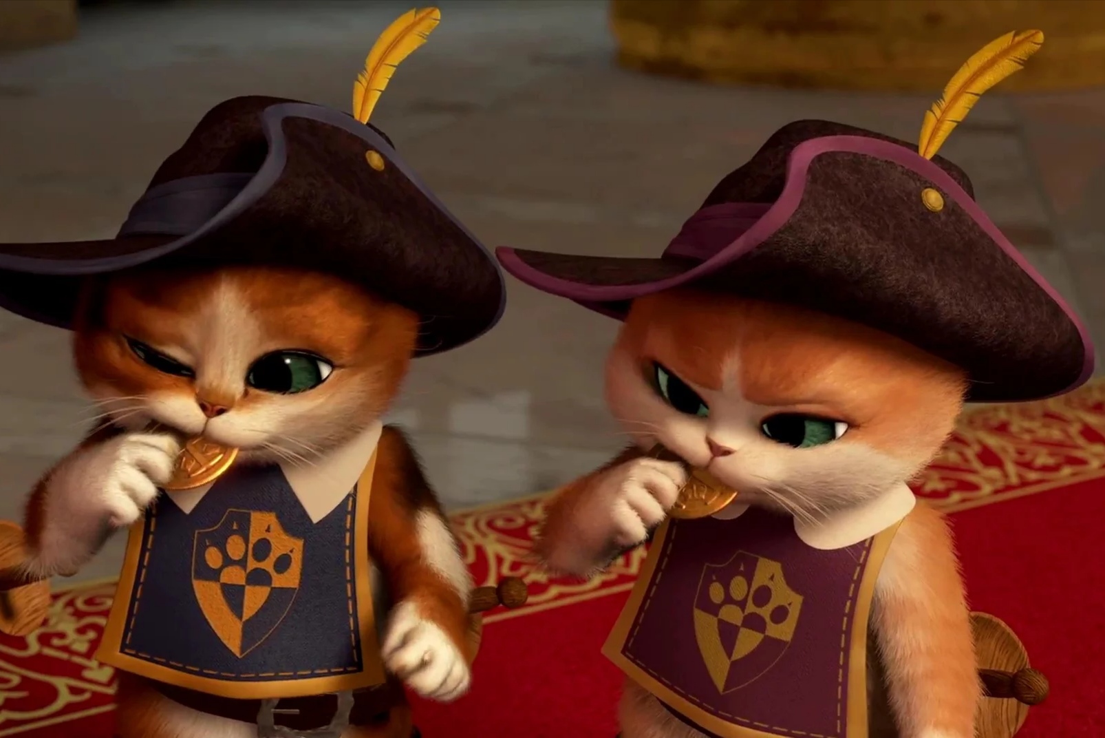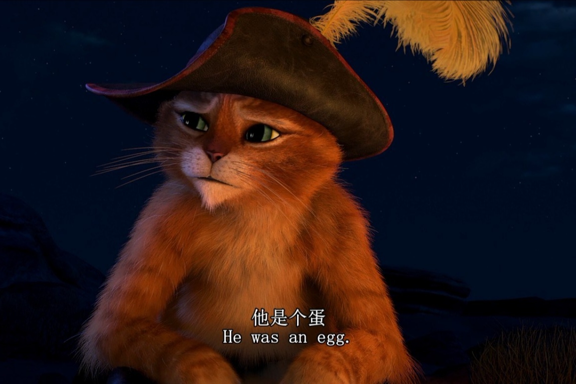 《穿靴子的猫》(puss in boots)是梦工厂《怪物史瑞克》续片,大放异彩的配角“靴猫剑客”成为主角,电影巧妙结合了《杰克与魔豆》、《贼公贼婆杰克与吉尔》、《矮蛋先生》三个在欧洲家喻户晓的童话故事,让靴猫puss和他的好朋友【humpty dumpty】一起上演了一幕荡气回肠、悲喜参半的西部故事。