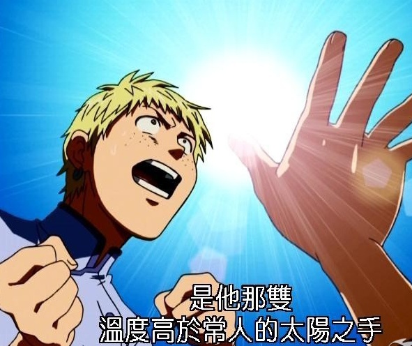 首先是主角东和马的天赋太阳之手,意思是他的手天生比一般人热很多,所以揉面的时候能够促使面团迅速发酵,最后做出来的面包也更蓬松。还有一个忘记名字的男配角,靠着苦练游泳,练出了月亮之手,手温虽然没有太阳之手厉害,但也比一般人高不少。